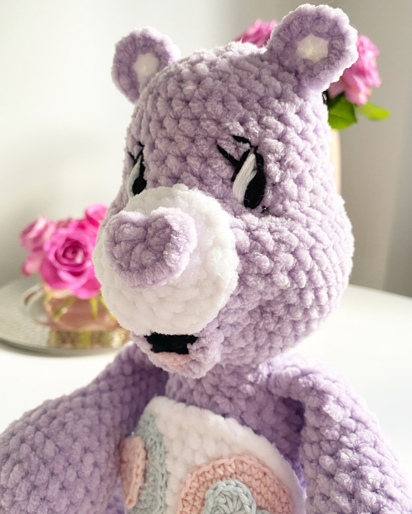 I remember every time my sister and I went to the video store to rent a VHS (don’t start doing maths on my age) when I was little I’d beg her to rent the Care Bears movie, and most of the time she’s let me. So I wanted to share my love of Care Bears with you with this Share Bear pattern (see what I did there…) Enjoy!