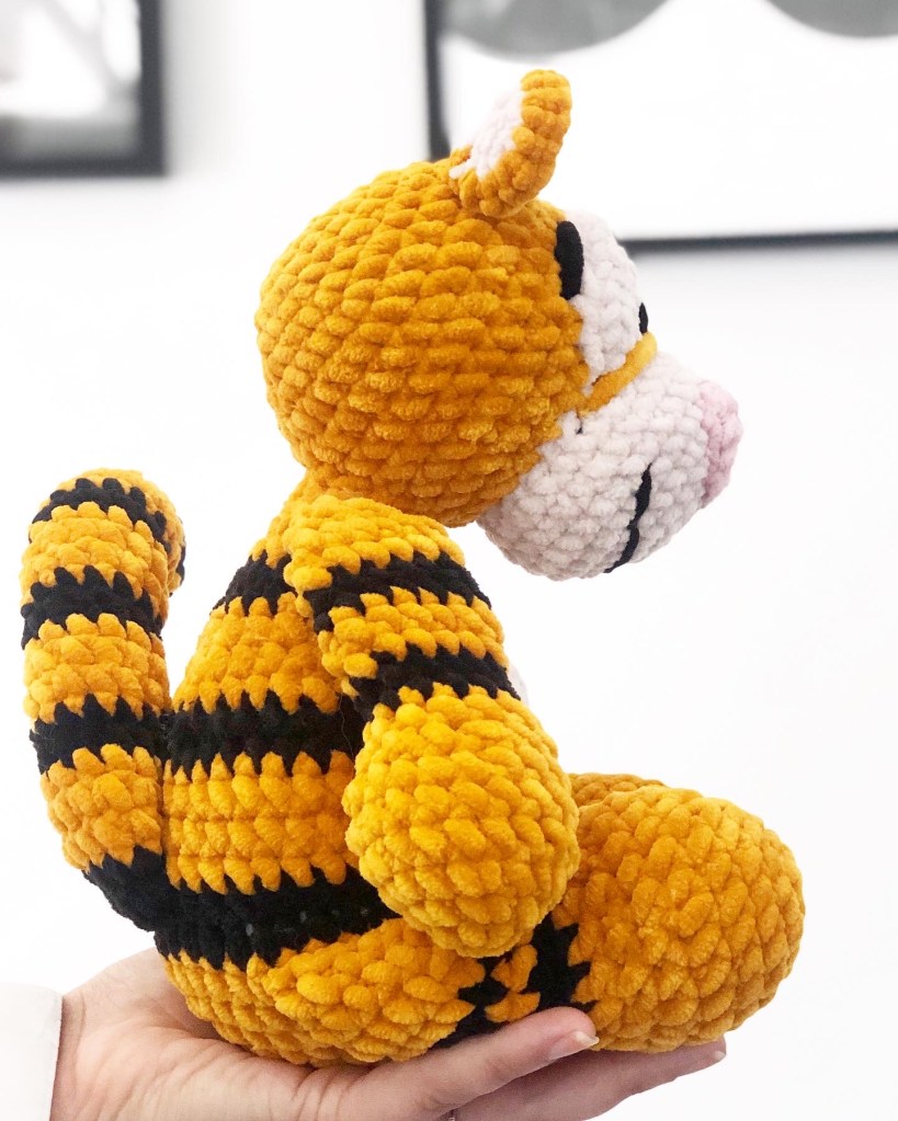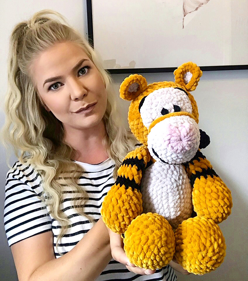Winnie the Pooh and friends were some of my favourite characters when growing up. From furry diaries to carpets and blankets, it had to be Winnie the Pooh themed. So of course I had to recreate some of these loveable characters as amigurumis. They are all designed with chenille yarn to make them extra squishy. (It’s important that you use the yarns listed below or I can’t guarantee that the result will be the same.) Tigger here is quite a lot bigger than Eeyore so if you’re looking for a larger Amigurumi he’s the one to make!