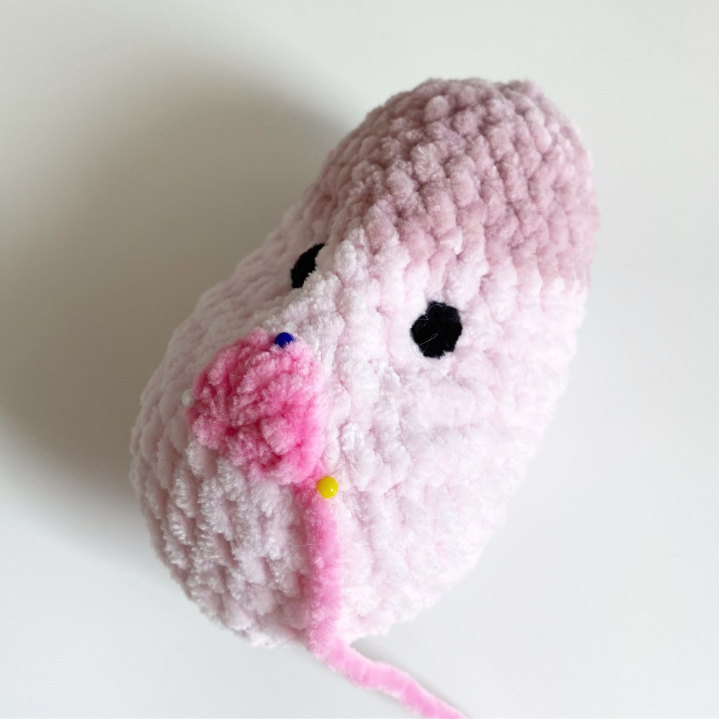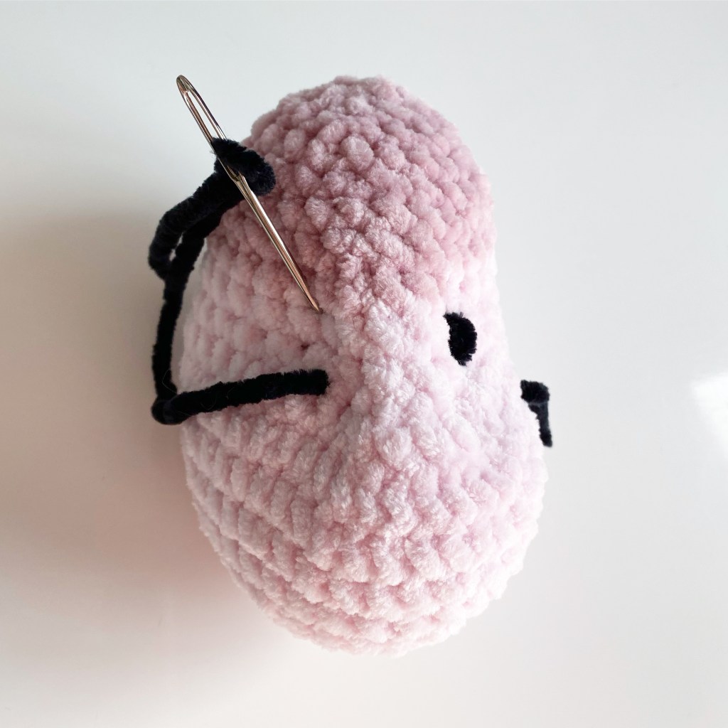Make 1 long st to do the mouth and secure in place with a few sts.