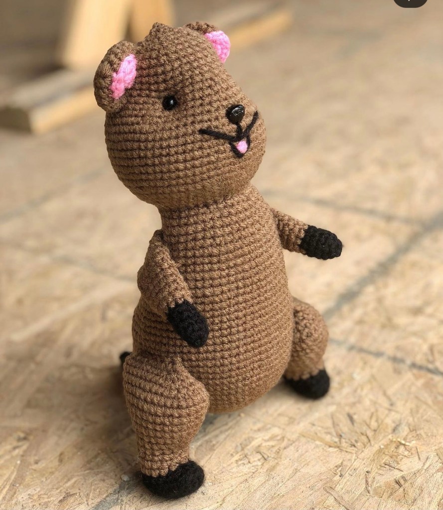 1. Buenos dias, anoche termine la quokka que hice con el patron que le compre hace un tiempo. Quede feliz con el resultado y se que mi futuro nieto lo estara tambien.