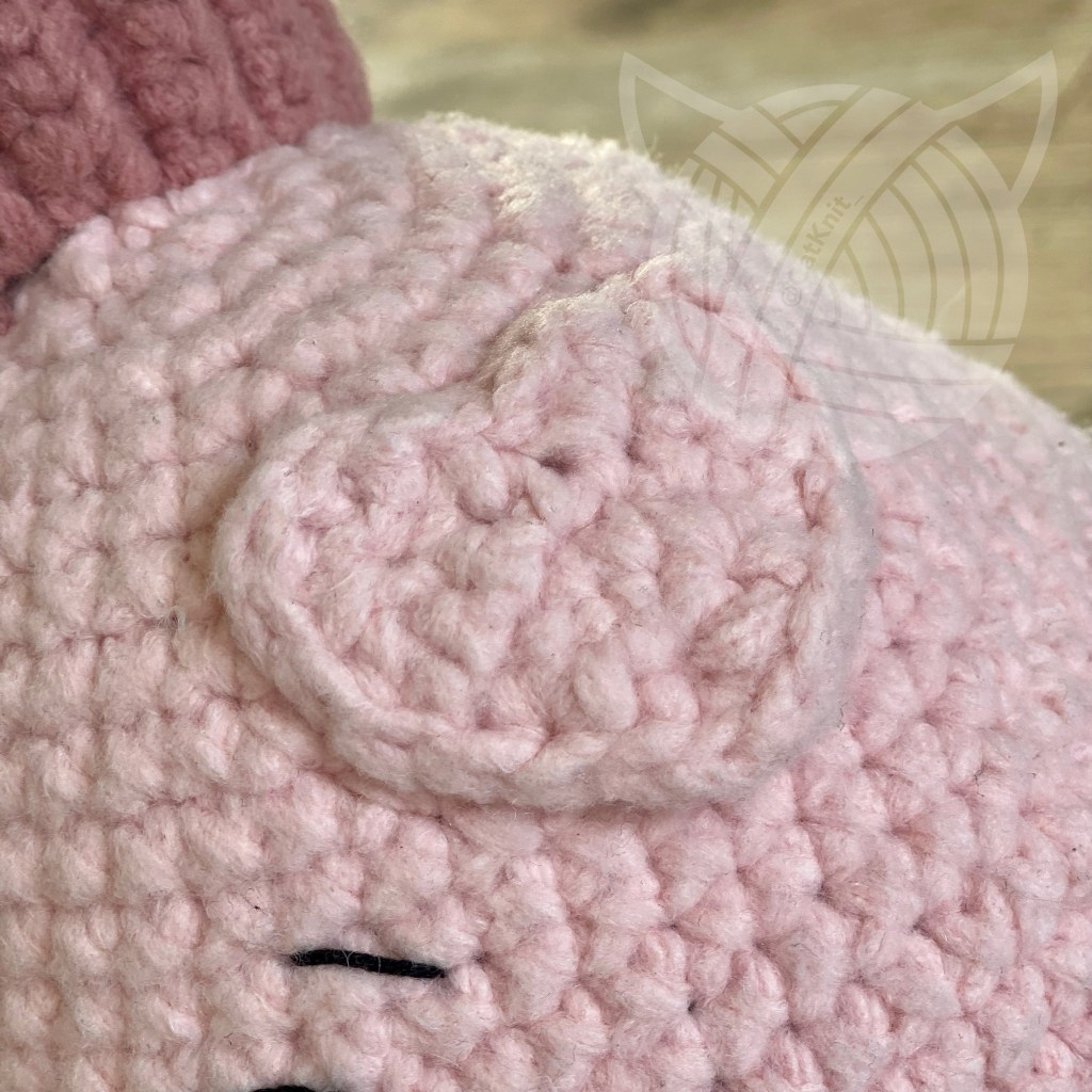 Attach the top of the ears in row 29 with 9 sts in between on row 28, the bottom of the ears should align with row 23. Do NOT attach the tips of the ears as you want these to flick up.